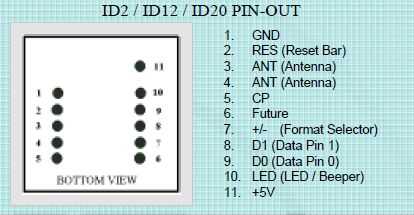 Esto significa que sólo tendrás 3 cables a la ID-12. Los demás pueden ser puenteados en el chip. Si el plazo es largo (más de decir 20cm), te sugiero el uso de cable blindado y los coches son mucho ruidos eléctrico puede causar lecturas dodgey.