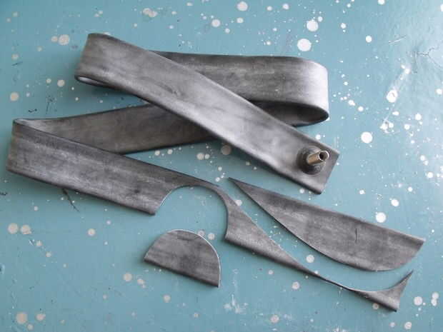 Comience cortando 8 "drop" en forma de piezas para el cuerpo y 8 formas de círculo para la cabeza. Las partes del cuerpo deben ser cerca de 16 cm de largo. Las piezas de la cabeza son de 6 cm. Todas las piezas se cortan en el borde para que la foto les muestra doblada por la mitad