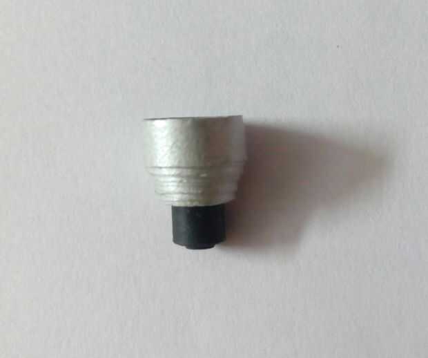 Vaina de una media negra y palillo en el agujero del cono de plata con la mitad de su ancho fuera de la última raya de plata.