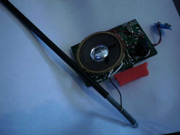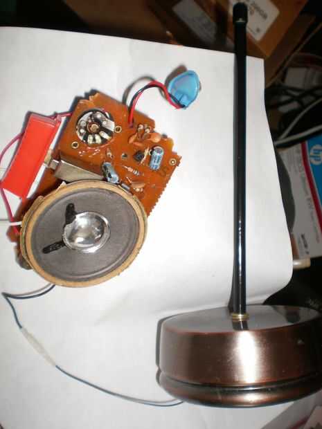 En la forma más simple, he quitado el dispositivo de "grabación" voz e inserta una mitad de las entrañas de un walkie talkie de la pair.