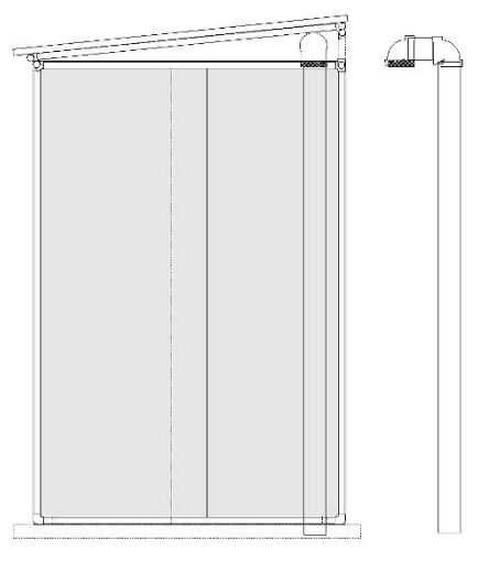 (La tubería de ventilación se pasa a través de la abertura entre la pared izquierda y el techo en el sitio de instalación e insertada en el 3" agujero en la losa.)