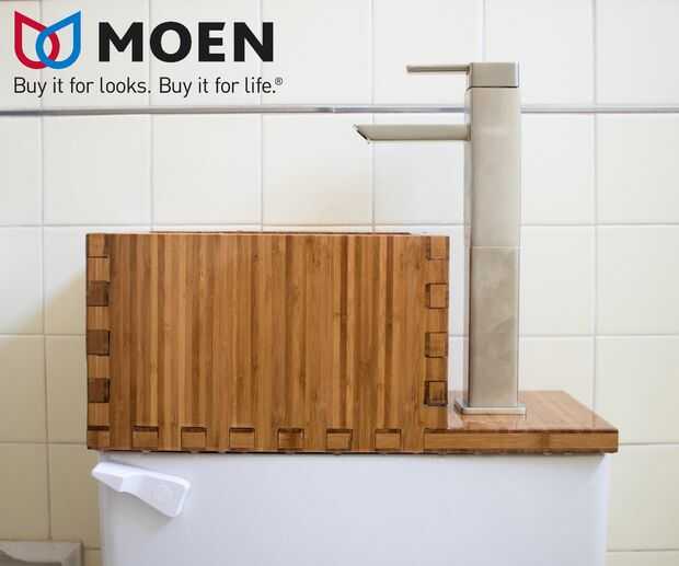 ¿Por qué utilizar agua usted podría beber para lavar un inodoro? Se trata de un enorme derroche de un recurso precioso, sobre todo en la épica sequía que estamos viviendo en California. Este proyecto es una manera de ahorrar agua en estilo, con un fregadero de Plyboo revestido plástico y elegante grifo Moen.
