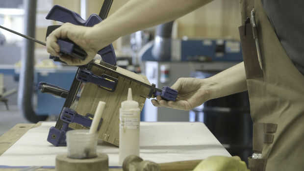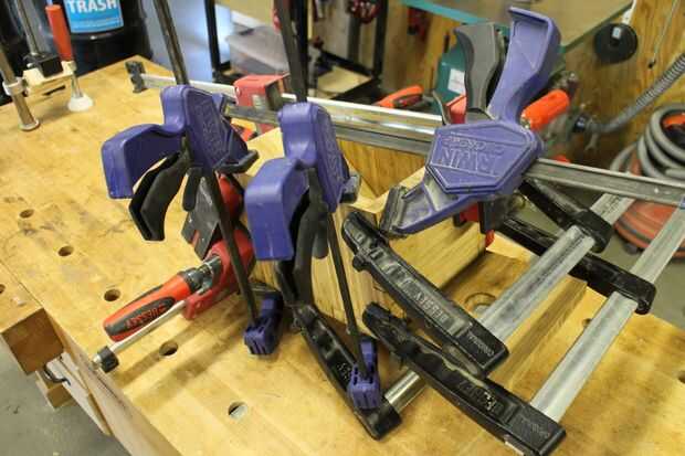 • Un montón de pinzas gatillo hizo el truco de mantener la pieza en su lugar mientras el pegamento curado durante la noche.