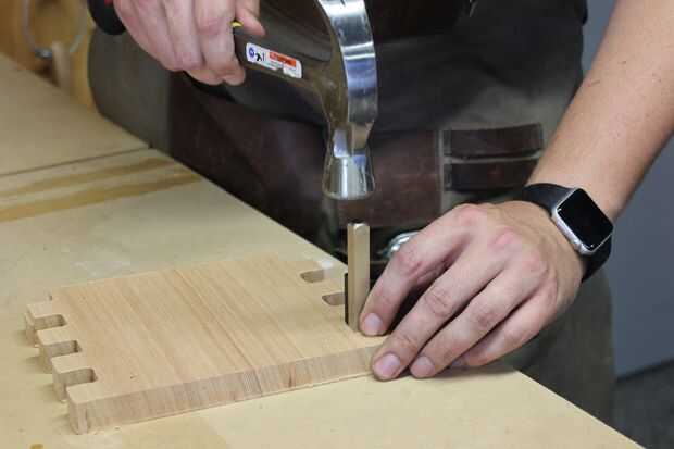 • Usando un router para cortar las articulaciones del dedo tiene una desventaja: el interior esquinas tienen un radio porque la broca es redonda. Para cuadrado hasta estos rincones, usé un cincel de esquina.