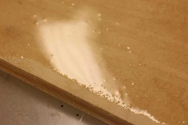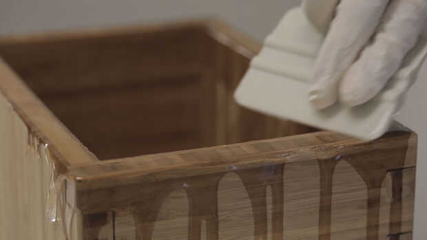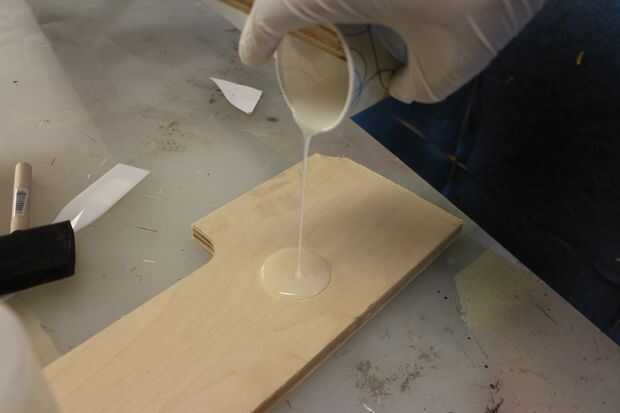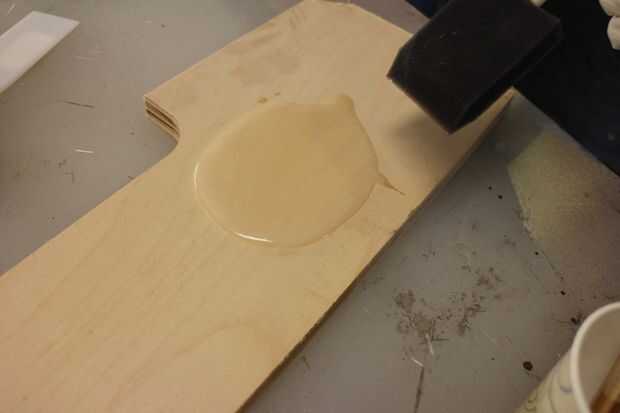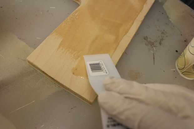 Sentirse cómodo con el proceso, otra hornada de Ultra-Glo mezclada y extender sobre el cuadro de acabados. Hice mi mejor para reventar las burbujas grandes y extender una capa uniforme en toda la obra. Esto es difícil porque el material es muy viscoso y quiere correr hacia abajo los lados de las rayas, pero separándose sobre la superficie con una espátula durante unos 5 minutos tienes todo bastante incluso.