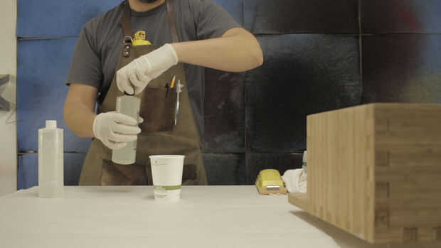 Para impermeabilización, utilicé la capa de polímero Ultra-Glo. Es muy fácil mezclar-agregar partes iguales de botellas el A y B, mezcló vigorosamente con un palo de agitación durante 2 minutos.