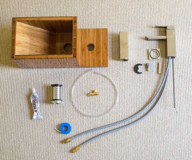 - He añadido algunas espigas de 1/4" en el interior las esquinas de la parte inferior de la caja para mantener en su lugar en la parte superior del tanque. Estos varían en ubicación dependiendo de las medidas exactas del tanque del inodoro en que está encaminada a colocar. Esta función puede ejecutarse también con tornillos de acero inoxidable.