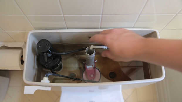 - Las mangueras de agua deben colocarse cuidadosamente en el tanque del inodoro para que no consiguen en el camino de la palanca o la aleta.