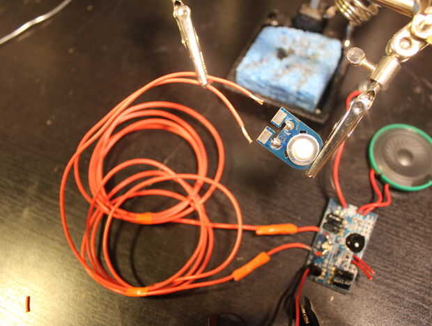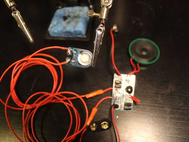 Crear un telar musical con un Makey Makey.Paso 1: Crear un prototipo Hemos querido crear un telar que podría crear música como el transbordador tocó cada hilo de urdimbre. Queríamos más de 5 hilos de trabajo... pero primero teníamos que probar el hil