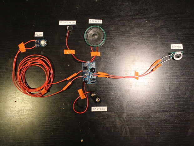 Suelde el botón adicional a los cables del botón de "grabar". Puede utilizar el alambre de cobre para extender hasta dónde puede alcanzar el botón.