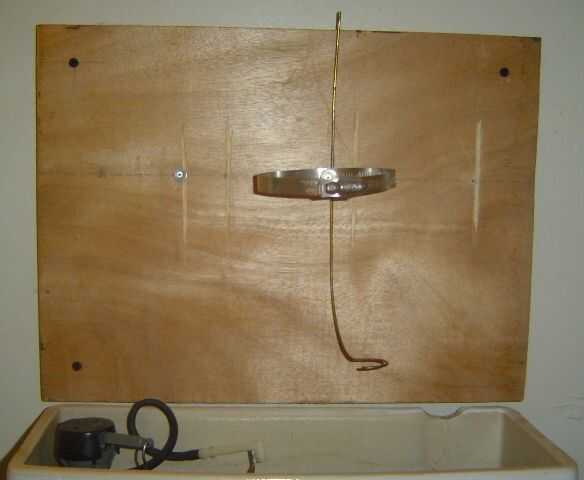 He utilizado el "ajustable altura suspensión botella gancho de alambre" montado en un 3/4 de pulgada madera contrachapada que va montado en la pared justo encima de mi tanque del inodoro. La madera me permite no destruir la pared, así como actuar como espaciador para mejor posición del desagüe de germinador.
