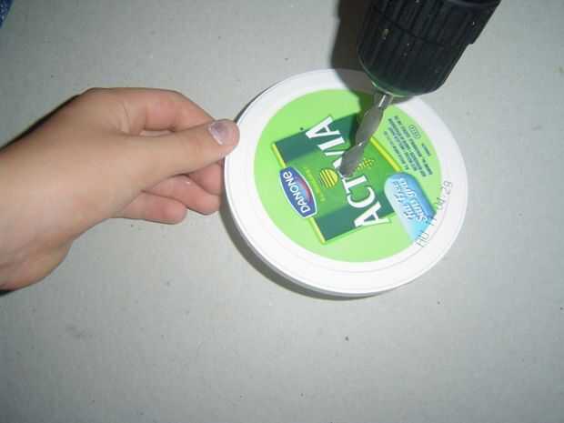 Perforar muchos agujeros 1/16" en la parte inferior del envase de yogur.