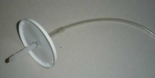 En el extremo no fundido de la cabeza de ducha, se deslizan dos juntas tóricas en el tubo. Luego deslice el tubo a través del agujero en la tapa y "lock" en su lugar con los otros dos anillos como se muestra.
