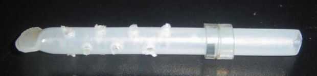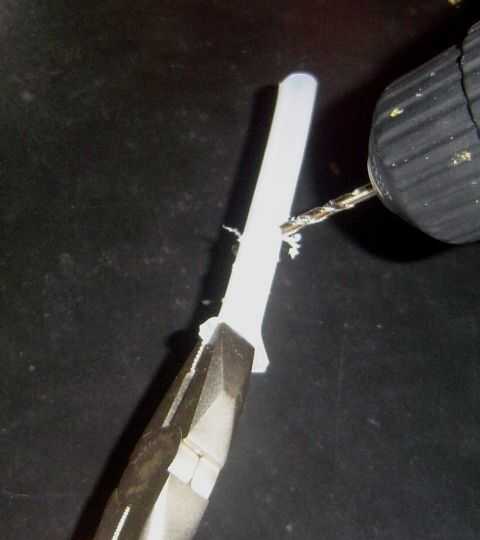 Sujetando el tubo, con unas pinzas al final pinzamiento, perforar varios agujeros de 1/16" a través del tubo de 2 pulgadas mas cercano al extremo pinchado.