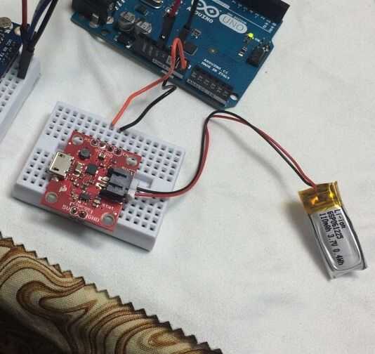 * Yo también soldar el puente sobre el cargador Adafruit LiPo para cambiar la corriente de 100 mA a 500 mA de carga.