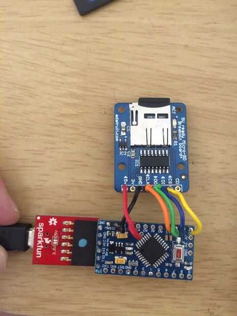 Originalmente había planeado el uso de Sparkfun microSD arranque. Después de decidir que un 5V / 16mHz Mini Pro es un controlador de micro mejor para el sistema que un 3.3V / 8 mHz Mini Pro, hubiera tenido que usar mi convertidor de palanca de lógica digital para comunicarse con el desbloqueo de microSD de Sparkfun. Teniendo en cuenta que todo lo necesario para encajar en una pulsera, decidí el Sparkfun electronics de la zanja y para otro proyecto.