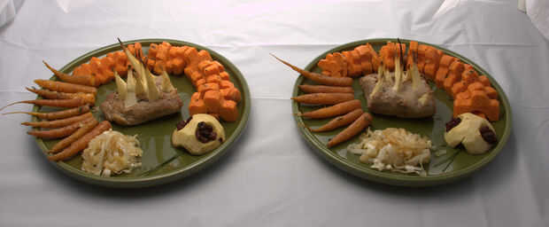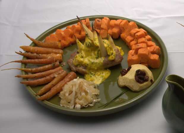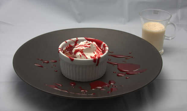 Halloween se llama de una sangre deliciosa cena de tres platos por luz de las velas. Qué mejor que al empezar la cena con un carpaccio óseo hecho con el ingrediente favorito de Halloweens, calabaza. Un frío pedazo delgado de calabaza acompañado de al