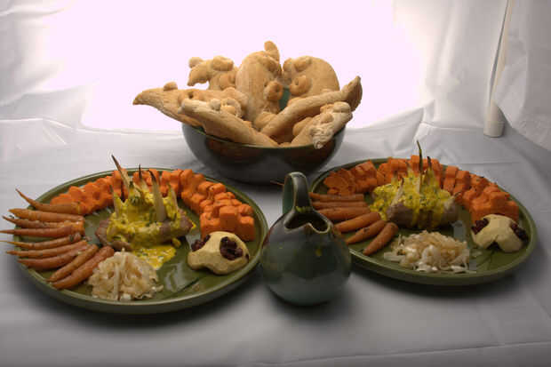 Halloween se llama de una sangre deliciosa cena de tres platos por luz de las velas. Qué mejor que al empezar la cena con un carpaccio óseo hecho con el ingrediente favorito de Halloweens, calabaza. Un frío pedazo delgado de calabaza acompañado de al
