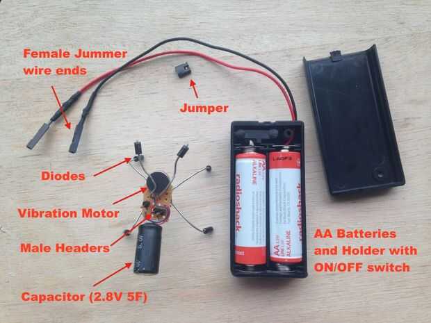 Ahora como estamos usando un condensador estupendo para el bot de insectos, vamos a utilizar 2 pilas AA a la energía como se muestra en el video de arriba.
