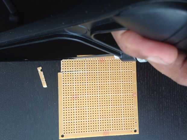 Corte un pequeño pedazo de la placa PCB grabado al agua fuerte, tendrá tamaño de al menos 6 X 4 agujeros como se muestra en la foto de arriba. Pero si usted es nuevo a soldar cortar un tamaño de 8 X 5 agujeros para que puedan tener un espacio de cerveza entre la articulación de la soldadura.