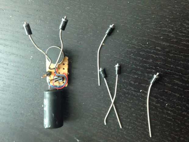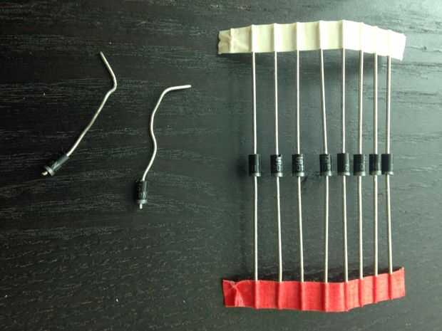 Y luego soldar cuatro diodos más las piernas como se muestra en la foto de arriba.