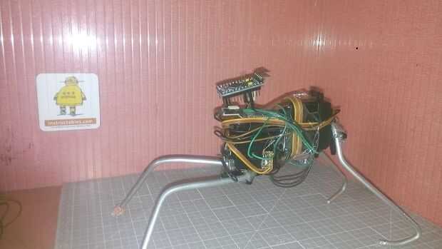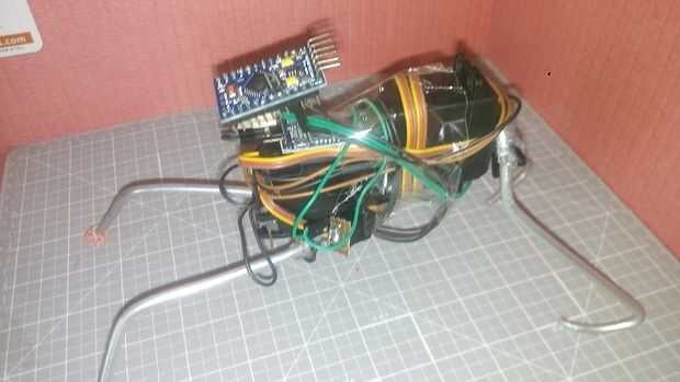 Este utiliza dos servomotores que actúa como los músculos de los insectos y los huesos están hechos de suspensión de aluminio. Módulo de Bluetooth HC-05 se conecta con cualquier smartphone y entonces necesitamos solamente una aplicación llamada controlador Bluetooth RC. Ahora cuando nos conectamos HC-05 al controlador Bluetooth RC. Nuestro Smartphone envía los datos a él. Cuando se presiona ningún botón envía del personaje ' a nuestros HC-05 y así hasta ahora.