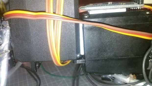 Este paso fue hecho. Primero les afine. Para sintonizarlos que necesita para subir el siguiente código que hace que el servo escriba 90 y no de 90 grados 90 significa velocidad cero por lo que si se mueve el servo en ese momento usted debe girar el tornillo (potenciómetro) ubicado a un costado de cada servo siguiente pone un palo de hierro con pegamento caliente en el lado del servo para que no se muevan demasiado.