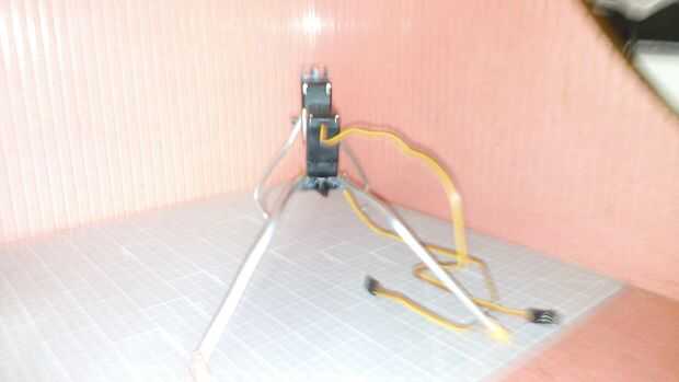 Doblar las piernas con alicates. Asegúrese de que los pies hacia atrás hasta que punto, actúan como un gancho que son capaces de trepar sobre los obstáculos. En esta etapa no se preocupe la forma de las piernas que puede darles forma después. Piernas pueden deslizarse por lo que usted debe de adjuntar la tubería del encogimiento del calor o banda de goma. He utilizado goma.