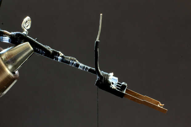Atar el interruptor de láminas en el extremo posterior del cuerpo. Se trata de la punta del abdomen, donde será nuestros bigotes sensibles.