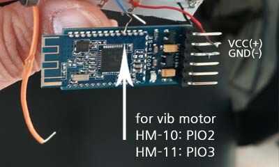 Aquí es otra etapa difícil. Usted tiene que soldar 3 cables al módulo de BLE. Si no usas breakout Junta que tienes que hacer la soldadura precisa. De todos modos necesita 3 cables a - VCC, GND, PIO2 (o PIO3 en el HM-11).
