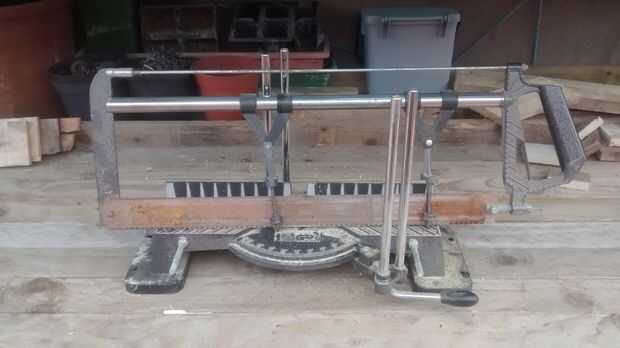 - Una manera de cortar ángulos (mitre vio en la foto, también utilicé una sierra de cinta pequeña porque soy perezoso)