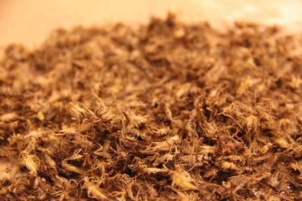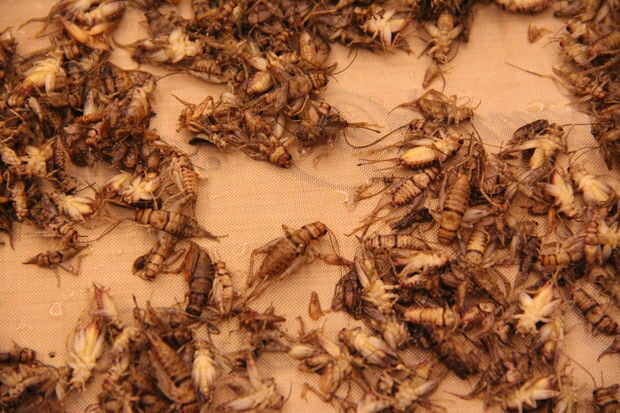 Cuando los grillos se enfriaron coloqué en una hoja de deshidratador encima de la bandeja y les había deshidratado hasta que fueron completamente seco pero no crujiente.