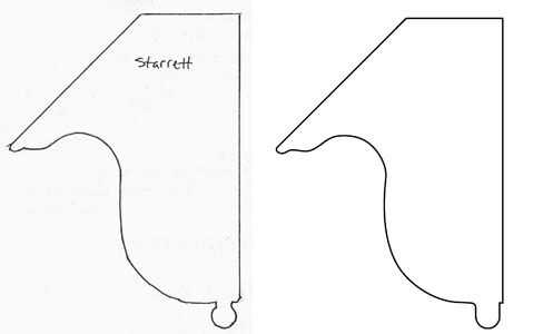 2) trazar el contorno de la herramienta en un pedazo de papel y luego escanearlo. Si haces esto, es mejor convertir el análisis en un formato vectorial (usar LiveTrace en Adobe Illustrator o su equivalente) por lo que se puede modificar si es necesario. Este método no es tan fácil como parece porque, si está utilizando un lápiz o un bolígrafo normal, es un poco difícil mantener su punta de lápiz o pluma a una distancia fija desde el borde de un objeto complejo mientras se traza.