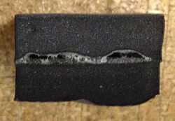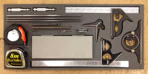 Para conseguir una inserción de lo suficientemente gruesa como para sujetar herramientas más gruesos, laminado de dos capas de la espuma con 3 M Super 77 adhesivo en aerosol. Un paso extra molesto, pero 5/16"(8mm) es demasiado delgado. También Recuerde tener que laminar los medios cosas que ha duplicado su coste real, ignorando incluso el costo del adhesivo en aerosol y el tiempo para unirlo todo. Dicho esto, es una manera de conseguir algunas piezas grandes de espuma para alimentar al láser.
