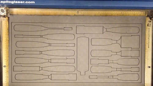 El material grueso doble corte en el láser de Epilog de 60W a velocidad de 20%, 60% de potencia y 1000Hz. Para un solo grueso, velocidad 55%, 60% de potencia y 1000 Hz. fue suficiente.