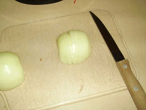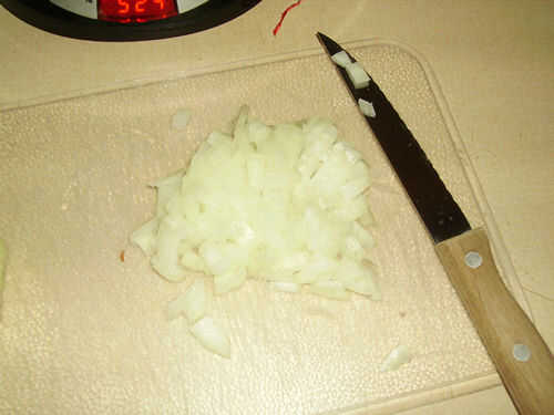 Generalmente empiezo por pelar tanto de las capas externas de la cebolla como pueda. Pelado abajo hasta que la piel es blanca y tiene cualquier imperfecciones reales es una manera segura para asegurar la calidad que lo quieres en una cebolla picada. Después de eso, cortar las dos puntas de la cebolla por lo que es plano en ambos lados. Con la cebolla que está parado en uno de los lados planos, cortar por la mitad de la cebolla y el enfoque en una mitad a la vez. Colocar una mitad sobre la tabla de cortar y corte rebanadas mientras trataba de mantener en la misma forma. La siguiente parte es más fácil si sigue en la misma forma. También, aunque no existe tal cosa como demasiado fina, es mucho más fácil que quede demasiado espeso. Finalmente, con la mitad cortado en rodajas, convertirlo en una tabla de cortar y corta otra vez en la otra dirección. A desmoronarse mientras que usted está cortando, así que ten cuidado. Simplemente Repita con la otra mitad y luego la otra cebolla. Cuando hayas terminado, ponerlo a un lado listo para ser añadido a la carne.