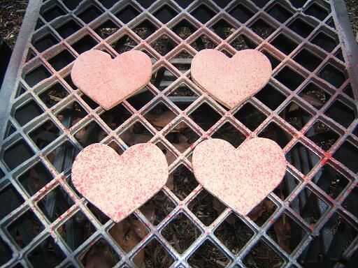 I aerosol pintado el corazón con un color crema y salpicado con pintura en aerosol rojo.