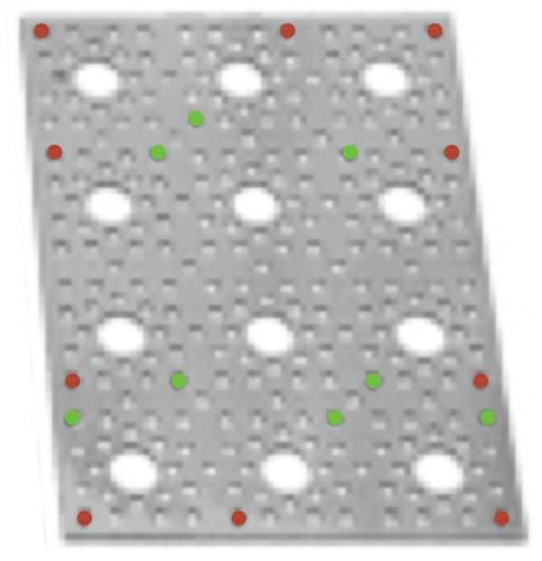 - Monte el 4.5" canal de paso lado 4.5" desea que la parte inferior del marco del reloj. Usted tendrá que usar solo tornillo placas donde marcado (rojo) en la segunda figura (usted debe tener suficiente si pides el paquete de hardware A la lista de piezas). Puede utilizar las tuercas donde marcada (verde) en la figura, pero puede utilizar placas solo tornillo si lo desea. Utilice tornillos de 5/16". NO APRIETE LOS TORNILLOS EN ESTE MOMENTO.