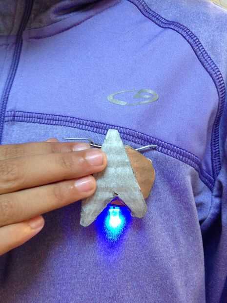 corrugado cartón (debe ser corrugado), cinta, alambre de un lazo de pan, un LED de color, batería de botón, tijeras, marcadores y un pin de seguridad. (Nota: realmente no parpadea pero va a brillar)