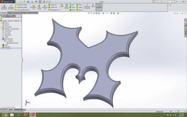 Luego, sacó esta forma había escalado al tamaño y había añadido un bonito bisel en los bordes. Se trata de una forma muy amigable para el fresado de CNC como sólo hay una aguda esquina interior y el ángulo de la misma es bastante obtuso. Ángulo bajo, agudo en las esquinas interiores son más difícil de molino hacia fuera sin necesidad de cambiar la apariencia de la pieza y requiere cortadores pequeños, así tenlo en cuenta al dibujar su forma.