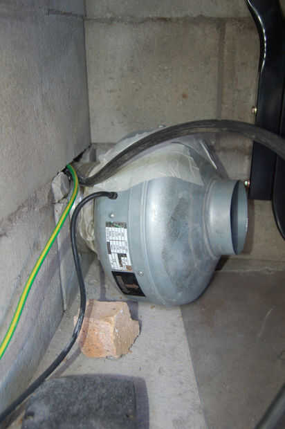 Como un aire refrigerado por unidad, que dentro de una caja con ningún movimiento de aire mataría el generador muy rápidamente. El aire llega a caliente y la llave térmica sería tan indulgente como la empresa de energía. El otro problema es que requiere oxígeno para funcionar y si no hay ningún flujo de aire, los gases de escape llenan la caja y matará el motor así. Usé un ventilador de tamaño decente para succionar aire fresco dentro del recinto y directamente la entrada de aire. Porque el ventilador es bastante poderoso hace circular el aire muy bien y el ventilador adicional conectado al generador de sí mismo también ayuda a dirigir el aire fresco en el motor. Está conectado directamente al generador para que una vez iniciado, el ventilador comenzará a soplar. No hay necesidad de recordar = menos probable a un problema.