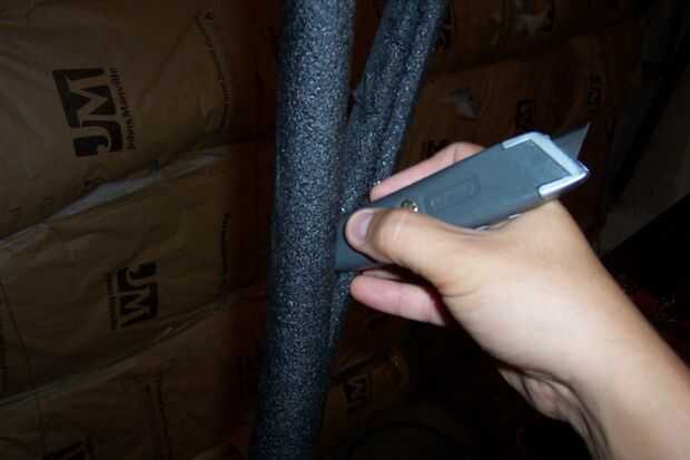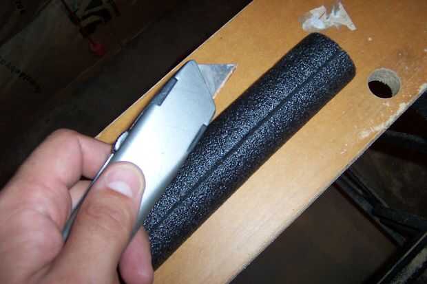 Este paso es bastante fácil. Con una navaja, cortar un tubo de aislamiento de tubería de 1/2"(diámetro interno) en mitad longitudinalemente. Esto es lo que hice:
