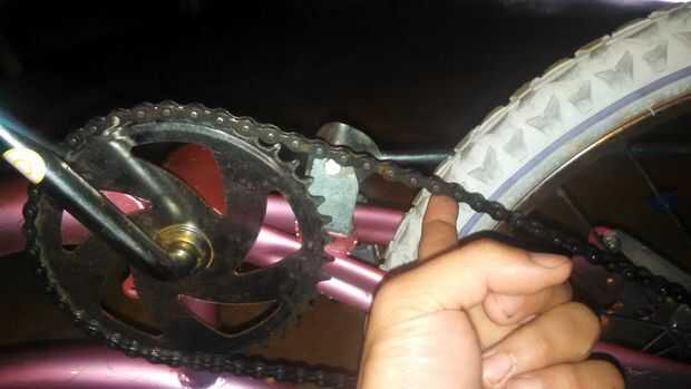 Compruebe la tensión de la cadena pulsando abajo en cadena o ligeramente hacia arriba,