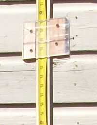 Un poste de medición se puede hacer de una pipa larga o una tabla. Hice un poste de 11' por extraer un trozo de 2 x 4 y empalmar juntos. Para la medición viró una vieja medida de la cinta en él. Entonces hice una diapositiva para que mi ayudante podría marcar la medida con la diapositiva si no puedo ver los números en la regla claramente. El polo resultó un poco pesado por lo que probablemente voy a hacer una más corta con algo más ligero.