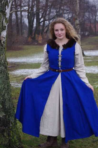Generalmente recomiendo a telas de lino o lana, como son los más auténticos. La lana es generalmente muy conveniente para la ropa de invierno, y para personas que viven en climas fríos es necesario mantener el aislamiento y la calidez de la tela en la mente. (Nadie le gusta ir a un mercado medieval con una chaqueta sobre su