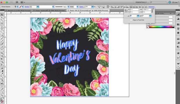 Abra el documento de (02) EPS de flor-06 en illustrator. Para cambiar el tamaño de la lona vaya a: archivo > configuración de documento. Haga clic en Editar mesas de trabajo y cambiar el tamaño de la lona a 10 en x 8 en. Seleccione la ilustración y haga clic en transformar en la barra superior y cambiar la altura a 8 en.