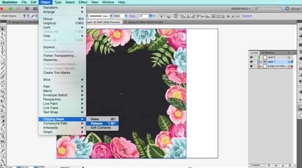 Para quitar la máscara de recorte alrededor de la ilustración, seleccione la ilustración y, a continuación, vaya a objeto > Máscara de recorte > liberación.