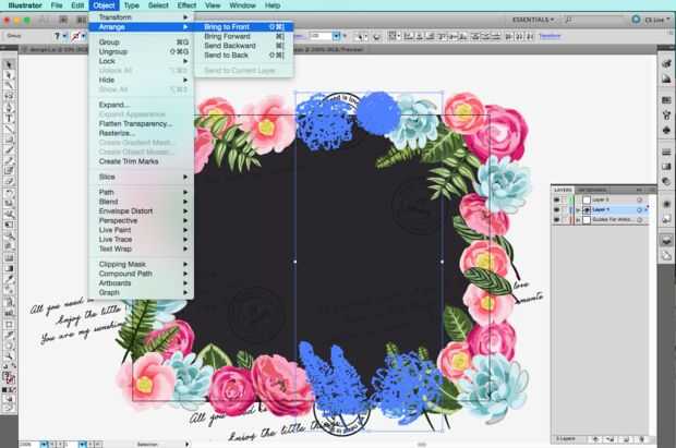 Afortunadamente para nosotros, DaryaGribovskaya, el ilustrador, dejó regalitos extras ocultados por la máscara de recorte. Seleccionarlos e ir a objeto > organizar > traer al frente.
