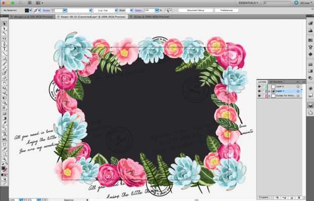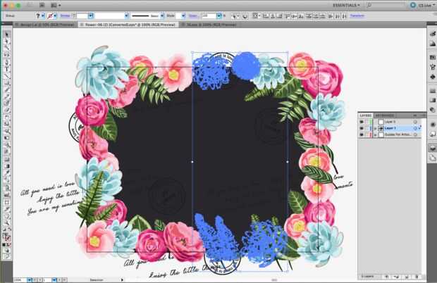 Seleccione las flores en el lado derecho de la obra y posición a la derecha de tu lienzo. En este punto también puede seleccionar el rectángulo de carbón en el centro y arrastre hasta el final.