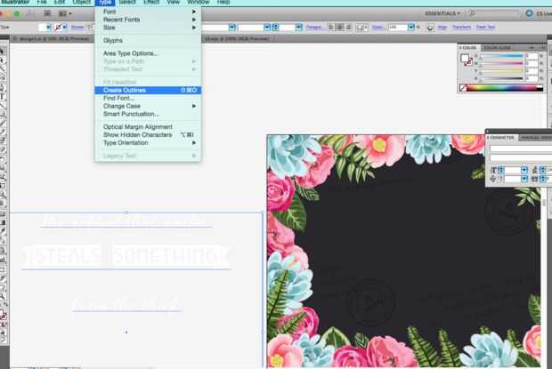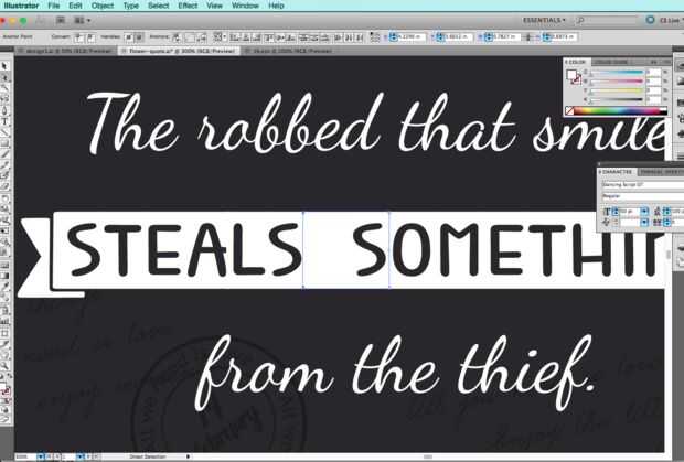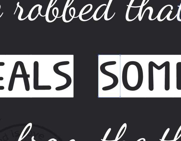 Para fijar el espacio entre "roba" y "algo", utilice la herramienta Selección directa (cursor blanco) y selecciona los nodos a la izquierda de la "s". Ahora arrastre el cuadro de manera que toque "roba".